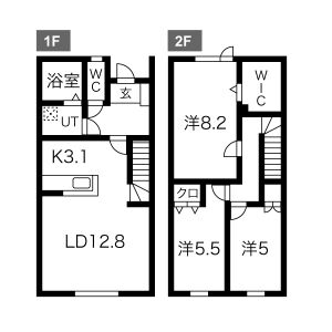 | 間取タイプ | 3LDK | 間取詳細 | 12.8xK3.1x8.2x5.5x5 |