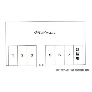 敷地内駐車場/空き3台/8,800円 ②⑤⑦ 高さ制限有り。現地確認、試し停め必須です。 |